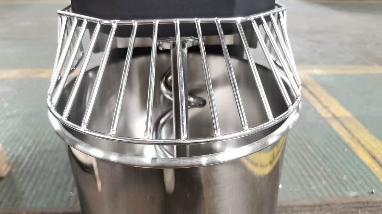 Agitador y bowl de acero inoxidable de grado alimenticio.