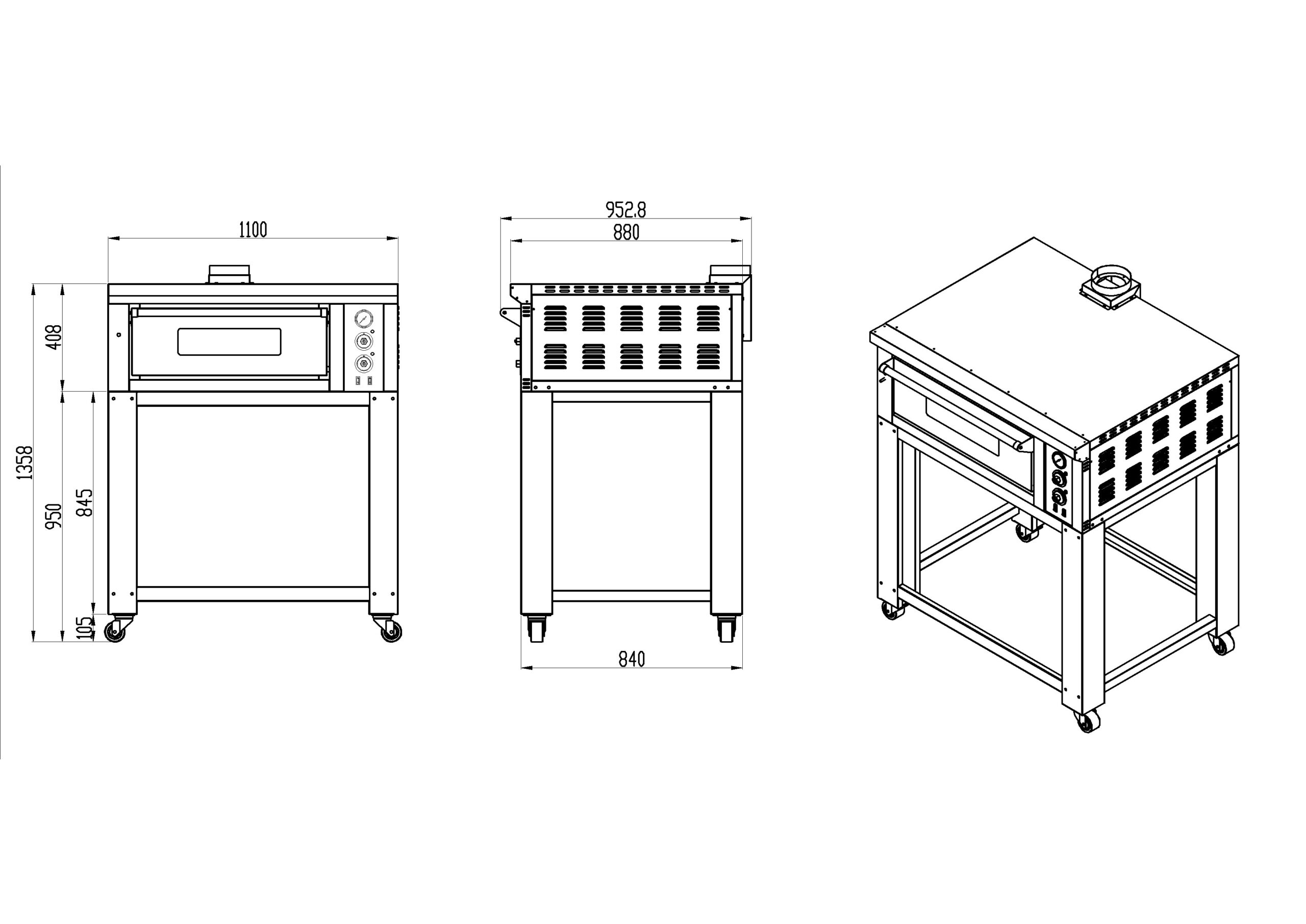 ● Capacidad: 4 Pizzas de 13” / 33 cm